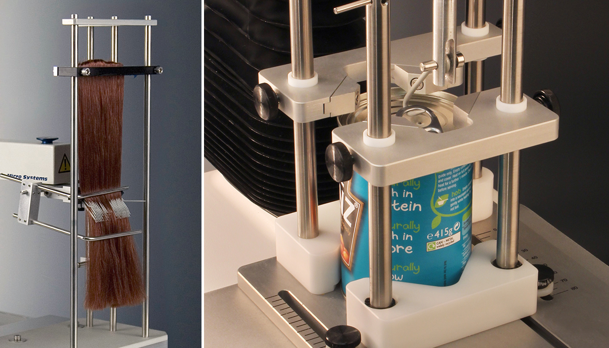 我們的探頭和夾具系列的發展是由於需要新的方法來保持/支撐和測試樣品,這些方法以前無法用於傳統的質地分析測試方法。例如,如果您需要類比消費者在使用產品時通常執行的動作,為什麼不嘗試我們設計的一個夾具,讓您能夠在測試期間模擬這個動作。 該測量模擬了消費者在評估麵包新鮮度,典型的例子包括麵包擠壓的測量,以及模擬了頭髮梳理力時所做的動作,則將允許評估不同頭髮產品對頭髮梳理性的影響: |