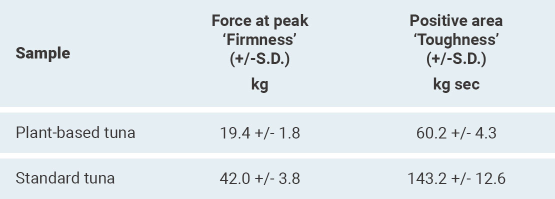 植物基魚柳要想廣受歡迎,必須與傳統的魚柳質地相匹配。在實驗室中獲得的結果表明,植物基魚柳比標準產品更結實、更堅韌。 模仿海鮮的植物性替代品正出現在世界各地的餐館和雜貨店,而在實驗室中用真實細胞“培育”的海鮮也即將出現,Blue Nalu、Remilk、Upside Foods 和 New Age Meats 確定了這種質地 是在細胞培養食品市場創造“相同”感官體驗的優先事項。立法趕上生產這些產品的技術只是時間問題,這是一場在起跑線上獲得最佳產品的競賽! 這就是需要使用質構儀的時候。 |