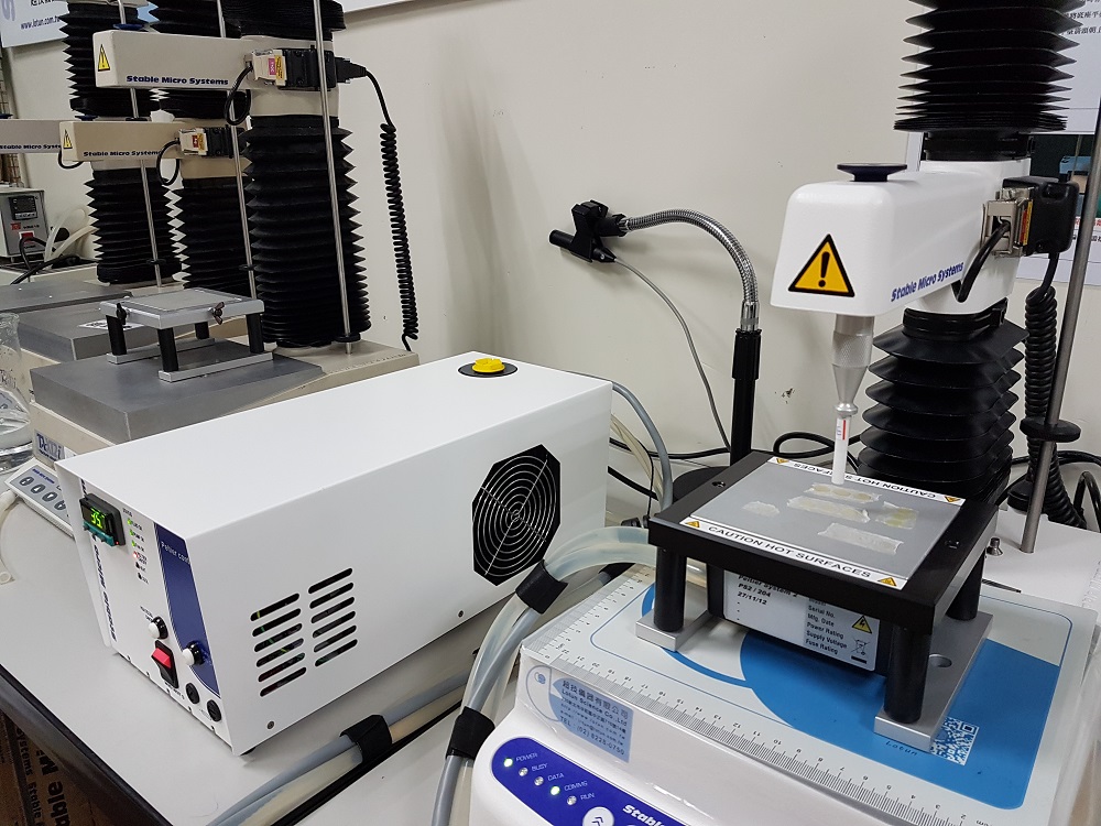 | 因考慮到樣品貼上人體皮膚人體溫度感官,本次試驗另使用溫度控制裝置,將樣品固定于加溫平板上,控制溫度約為36℃±1℃下進行感官關聯測試。 |