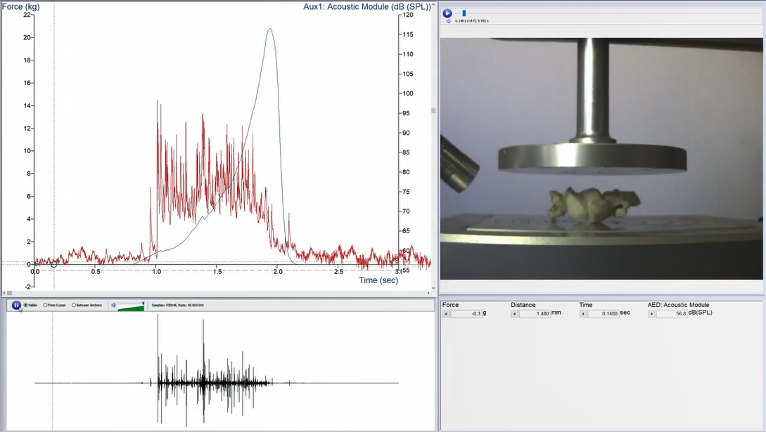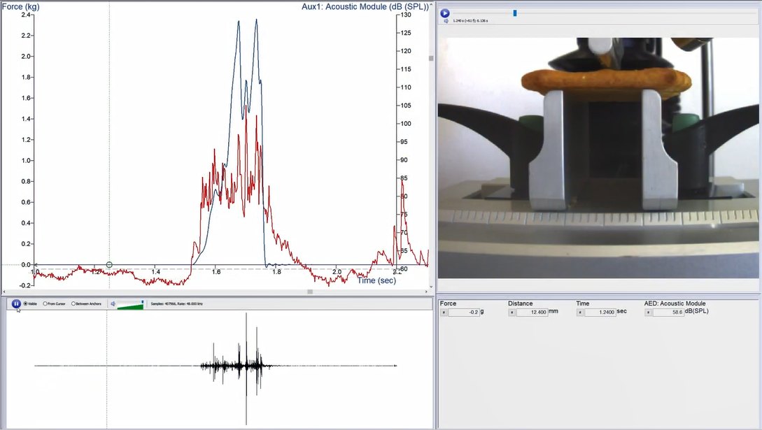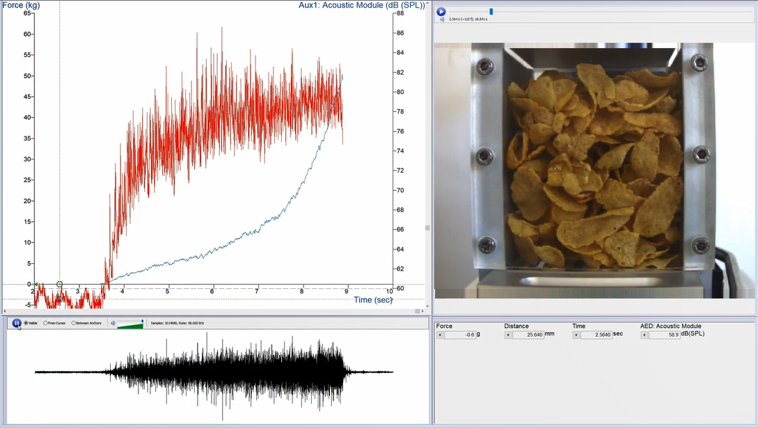 | 聲學資料可以在Exponent Connect軟體(如上所示)中即時測量和顯示,以及機械測量(力,距離和時間),以識別測試期間的某些事件,並在質地分析中提供第四維度。您可以測量打開飲料罐時的爆裂聲或浴霸解體時的嘶嘶聲。這種聲音測量提供了另一個層次的定量資料,用於測試過程中樣品變形時發生的斷裂或聽覺事件。 那麼,聲音測量有什麼新變化呢? 最新的改進是Exponent連接軟體現在可以處理音訊並將這些資料同步為.wav文件。這些音訊檔極大地有助於在分析測試結果時理解。能夠在查看音訊資料和聲學包絡資料的同時聽到音訊,有助於您瞭解他們正在分析的資料的性質。 在學術界,最近發表了這些論文,在休閒食品領域使用了質構儀和音訊裝置。 l 聲學設置組合作為乾脆食品的感官脆度指標 l 膨化脆麵包的聲學、機械和微觀結構特性 l 使用機械聲學測量方法快速評估薯片脆度 l 炸薯條質地聲學力學測量評估:油炸和空氣油炸的比較 l 膨化早餐麥片的質地:添加牛奶對質地特性以及儀器和感官分析之間相關性的影響 誰已經在使用音訊裝置了? 質構儀已經是休閒食品行業品質控制和保證的已知工具。 音訊裝置自 2009 年以來一直存在,在此期間已被多項專利(包括洲際大品牌用於設計具有兩種質地的糖果)並廣泛用於已發表的論文中,作為以這種新穎方式表徵產品的寶貴補充。 想瞭解更多關於測量聲音的資訊嗎? 為了獲得競爭優勢,您需要工具來測量酥脆/鬆脆產品開發的結果——當您準備好量化您的需求時,連接到音訊裝置的質構儀是解決方案。 |