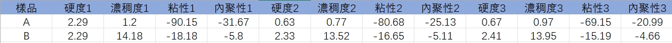 測試中可以看到兩個不同的材料的沉澱狀態的區別,A樣品的沉澱狀態較好其粘性較高隨著攪拌的次數緩慢降低,B樣品的沉澱較穩定每次迴圈的狀態基本一致