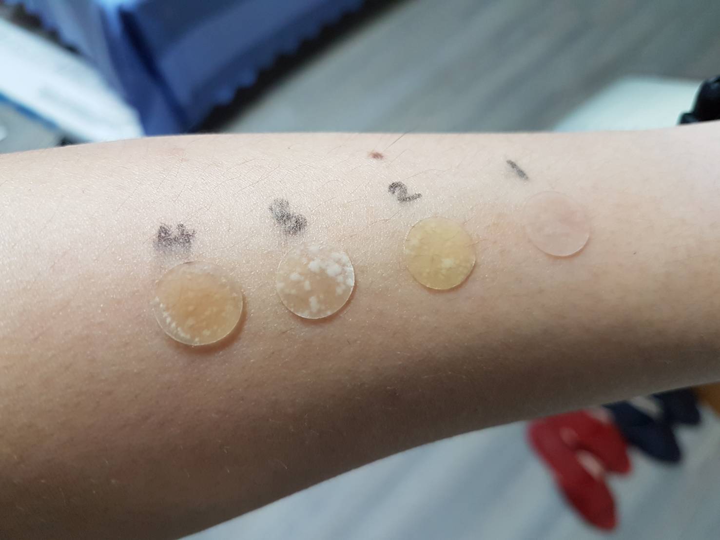 青春痘又称粉刺、面疱、暗疮,医学上称为痤疮(Acne),大多来自于人体皮肤皮脂腺或是毛囊发炎所致,再加上空气质量差、气温升高或是一些不适当的化妆品使皮脂分泌过多,而难以排泄。痘痘贴的出现抓住了爱美民众的心,并随着医药及科技的进步,痘痘贴的发展已从靠吸附组织液的人工皮到含有多种抗痘成分的微针。 痘痘贴的抗痘原理分为两类,第一靠着形成密封环境,吸附组织液,使伤口愈合,第二为阻绝外部脏污,降低细菌感染而导致的二次伤害,因此适当的黏附力就相当重要,完整的平贴在皮肤上,除了有效吸附组织液,能达到涂布的药物完整释放,并阻绝外部感染,下图可看出不同痘痘贴于一段时间后,部分已出现明显气泡。但假如使黏附力增强,于撕掉时又会造成疼痛或伤口破裂。