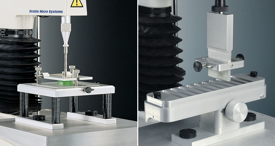 糖果支架提供了一种固定样品的方法,但将测试限制为只能穿透 10 毫米的孔。 有时需要测量材料与样品的粘附力。柔性基材夹具提供了一种支撑材料(例如糖纸)的方法,多凹槽盤固定夾固定样品。 通用样品夹提供了多种选项来固定样品/样品容器,以便刺穿/切片/挤出,然后在不提起样品的情况下将探头取出。 |