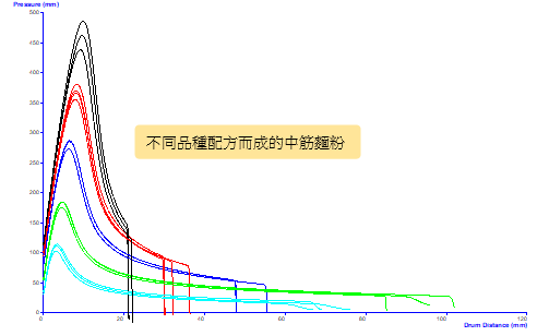 中筋麵粉的用途非常廣,是最普遍使用的麵粉種類,其蛋白質、灰份與吸水量都中等,與水混合後的黏性介於高筋麵粉與低筋麵粉之間,做出來的麵團筋度中等,彈性與延展性也中等,麵團摸起來是軟軟的感覺,不像高筋麵粉的麵團那麼Q彈。用中筋麵粉做出來的食物口感稍軟卻又帶點嚼勁,很適合做包子、饅頭、餃子皮、蔥油餅、黑糖糕、甜甜圈等食物,但要做餅乾和蛋糕也不是問題喔!家裡沒有中筋麵粉怎麼辦?許多人認為將高筋和低筋麵粉以 1:1 混合的話,就能代替中筋麵粉了,專家表示的確可以這麼做,但各家麵粉的高筋與低筋蛋白質含量不一定相同,混合後雖然算是可以代替中筋麵粉,還是建議直接購買中筋麵粉來使用最好,因此經由麵粉廠調配出來的品質可透過吹泡裝置(DOUGH INFLATION SYSTEM) 進行量化與判定,進而再細分歸類可應用的食物上。