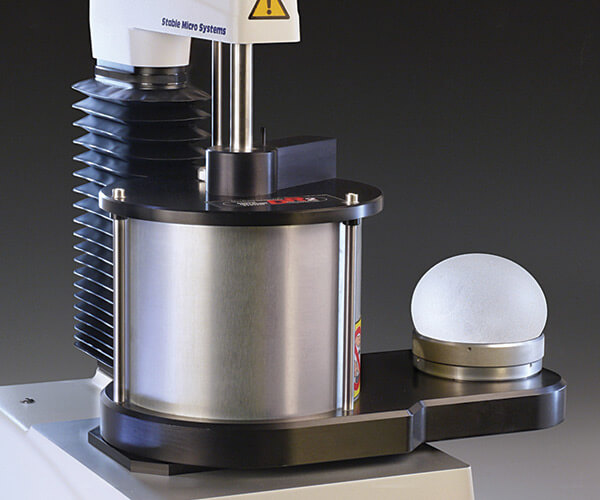 Warburtons Dough Stickiness System可测量面团的粘性以及面团的硬度,它具有一个样品测试箱,可以将500g或1Kg的面团样品快速放入样品测试箱中,并将切面暴露在大气中的机会降至最低,将一块固定板放在面团的顶部,对样品稍加压缩,然后将一个狭窄的刀片穿过固定板中的狭槽驱动到设定的距离。 在该动作期间的力测量获得面团的压缩峰值和压缩面积,这是其稠度(硬度/柔软度)的指标,当刀片被向上拉出时,Exponent软件会计算出附着峰和附着面积,峰越高或面积越大表示面团越粘,与传统的开放式技术相比,该设备可对面团的黏性进行更真实的评估,因为它通过在受控条件下进行测试,最大程度地减少面团在大气中的暴露。 |