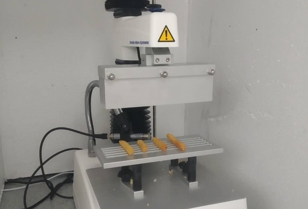 声音的应用案例-薯条: 日常食用的薯条、薯片等酥脆的食物,其软硬度和酥脆的口感是我们关注的重点,但是在其原材料的加工和半成品的储藏过程中,加工方式和储藏环境均会影响到最终成品的口感,所以,对其进行感官评价就是必要的。 在进行穿刺、折断等测试之外,通过音频装置进行酥脆度的测试也成为了近年来较多的实验方式。一些应用成熟的用户,已经建立起了自己的检测标准,将炸好的薯条放置在测试台上,通过探头的批量挤压,使用A/RAED接收其在挤压过程中发出的声音,得到一个声音分贝值的波形图谱。 通过计算该时间段的峰值数量以及不同分贝值段的有效峰值数量,来确定产品是否符合要求。同时也可籍此来调整加工工艺和半成品储藏条件,以便达到更佳的生产效益和市场竞争力。 |