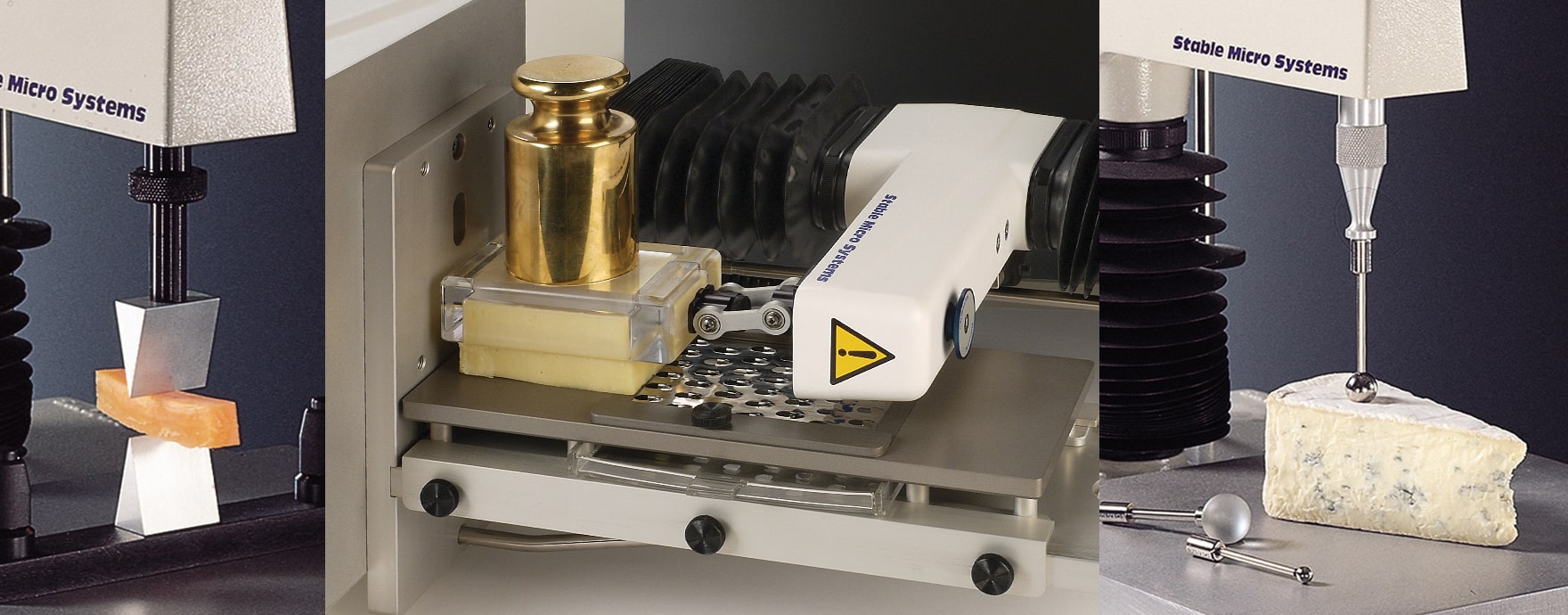 Cheese Grating Rig 可准确测量将奶酪磨碎所需的力。乳制品厂可以使用它来科学、客观和反复测量可切性,使他们能够完善奶酪配方以及生产和包装过程。 它与质构仪结合使用,包括一个由可互换的格纹面和一个样品块支架组成的平台,该样品块支架充当样品模板,并在测试期间将样品固定在适当的位置。质构仪以水平摆放使用,以确保对样品持续施加力。这种配置还意味着可以在多个周期内重复测试样本,而无需重新加载。类似地,样品上方的重物位置允许奶酪与平台面保持恒定接触,以实现一致的测量。该装置适应性强,提供两种类型的格纹面和一个刀片,用于测量切片性。这确保了真实的测试条件,并提供了有关奶酪质量和性能以及如何进行最佳加工的宝贵信息。 使用圆柱形或锥形探头对大于探头本身的样品进行测试被认为可以很好地指示奶酪的成熟度。这是法国一家主要的卡门培尔奶酪生产商目前使用的一种在线质量控制程序。使用球形探头对均匀产品进行小距离穿透测试可以测量奶酪的表面硬度以及成熟度。此外,通过测量穿透奶酪表面所需的力,可以比较其内部和外部的硬度。然而,越来越多的奶酪含有微粒,包括水果和其他内含物。测试一种产品中的不同元素不仅很棘手,而且通常会导致重现性低和数据误导。它可能会在最大和最小力阻力之间显示出很大的差异,这取决于探头是先接触到水果还是奶酪。 |
