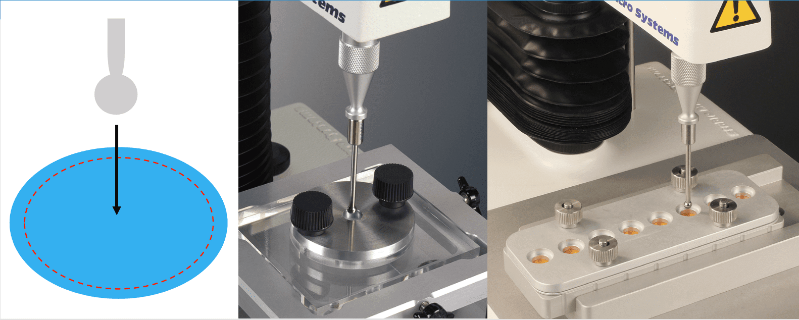 压痕测试是许多材料(包括聚合物)力学特性的一种广泛使用的方法。从压痕测试中得出的最重要参数是硬度,通常被描述为材料对局部表面变形的抵抗力。这是一个非常有用的测试,用于监测不规则物体的质量,如软质食品的稠度和粘性。然而,如果样品有一个平坦的表面和均匀的结构,只要在测试过程中进行准确的测量,这种测试设置也可以提供有用的应力-应变数据。 |