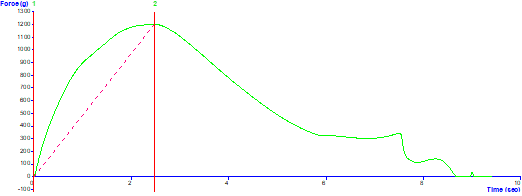 剛性(Sriffness):曲線上起始0.5mm的斜率,表示樣品的抗彎曲能力,g/sec。 彎曲強度(Bending strength) :曲線最大峰力值,表示樣品的抗彎曲強度,g。 | ||